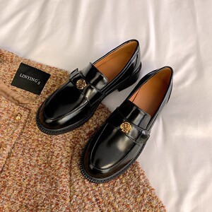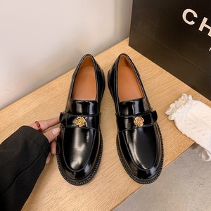 牛皮版~英伦风金币小皮鞋山茶花乐福鞋女真皮懒人一脚蹬黑色单鞋