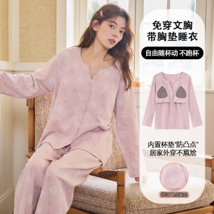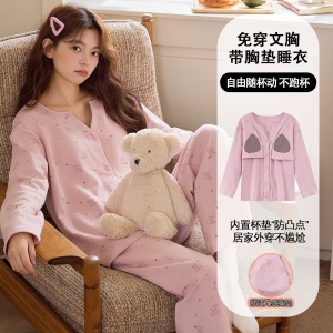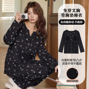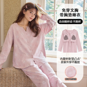 带胸垫睡衣女士2025秋季新款开衫长袖长裤套装休闲可爱学生家居服