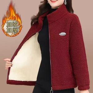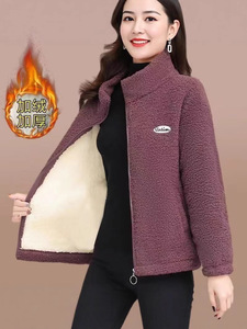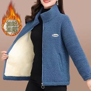 新款冬季加绒加厚棉衣女宽松大码中年妈妈外套休闲颗粒绒保暖上衣