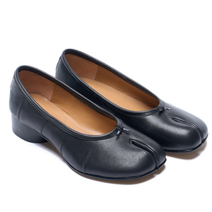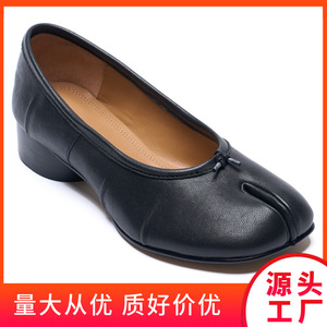 黑色tabi分趾鞋2025新款中跟猪蹄鞋褶皱复古粗跟芭蕾舞浅口单鞋女