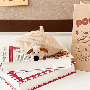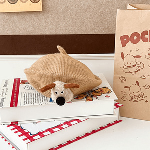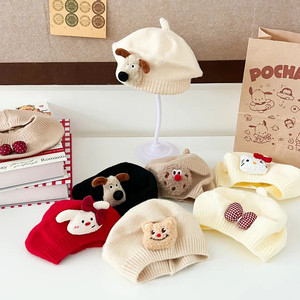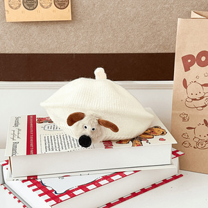 婴儿贝雷帽卡通系列秋冬季针织帽子卡通风公仔圆顶ins风画家帽
