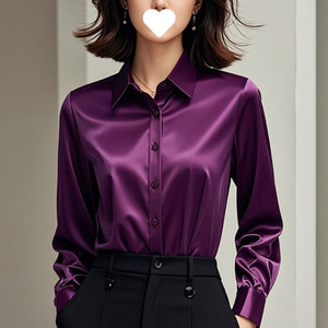 秋季新款高级感职业缎面紫色衬衫女长袖正装时尚通勤气质衬衣白色
