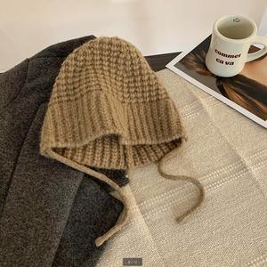 秋冬百搭渔夫帽子女韩系棕色毛线帽美拉德风保暖护耳针织帽子韩版
