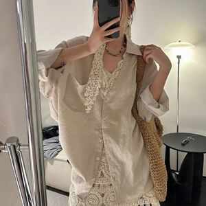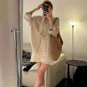 早秋穿搭套装韩系慵懒风时尚减龄蕾丝拼接假两件上衣半身裙两件套