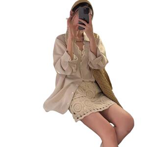 图片色蕾丝拼接上衣+半身裙(两件套)