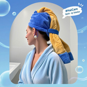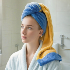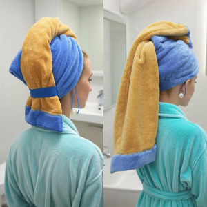 新款珊瑚绒名画灵感干发帽 创意干发巾珍珠挂绳吸水包头干发毛巾