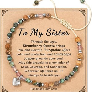女士天然石手链非洲松粉晶蜡线手工编织手链4mm图画石爱心手链