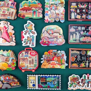 【泉州系列】城市旅游景点文创纪念品国潮木质三层滴胶冰箱贴批发