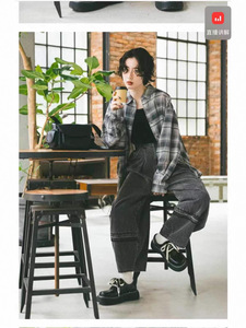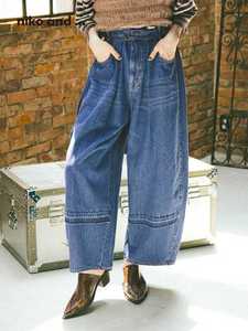 niko and 妮蔻日单森系牛仔裤2025秋季新款休闲复古棉质弯刀裤