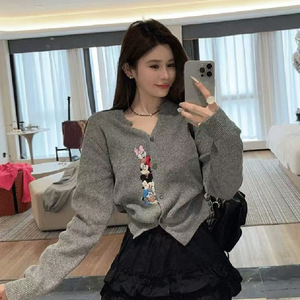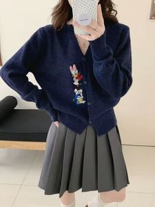 2025新款韩系羊毛针织衫跨境东南亚优质版卡通图案刺绣毛衣外套女
