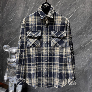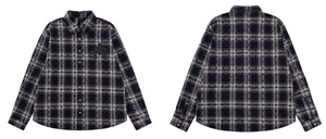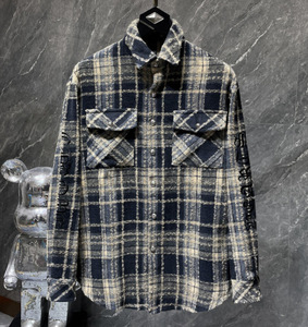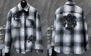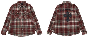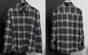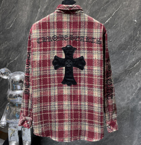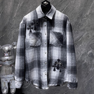 25跨境秋冬新款CH罗伈经典衬衫拼皮满十字暗纹满印格子复古长袖