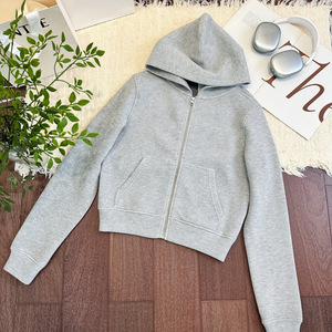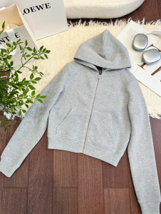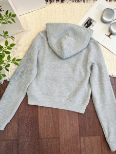 现货/宅女Nb*s提花针织经典空气层修身收窄连帽短款卫衣女