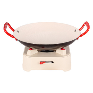 黑色水珠纹小炒锅24cm配斜口红色底座