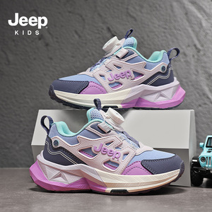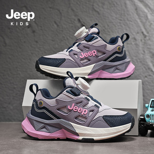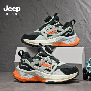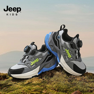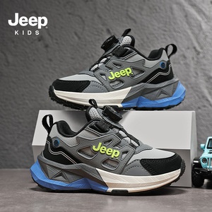 Jeep儿童运动鞋2025秋季新款防水革面男童跑步鞋旋纽扣女童休闲鞋