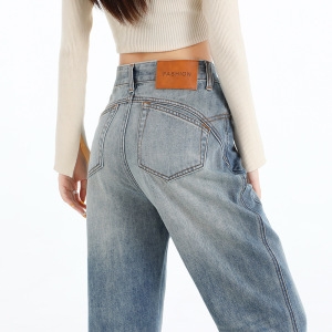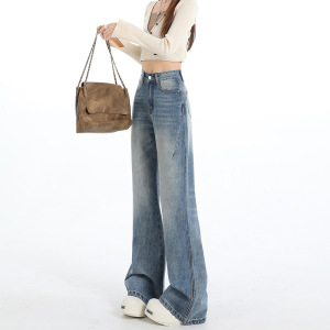 韩版百搭高腰微喇牛仔裤女2025秋季新款宽松不贴腿提臀复古喇叭裤