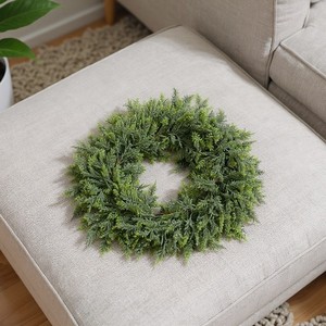 跨境爆款圣诞节松柏叶藤条圣诞松针花环手感诺福克松柏藤条