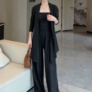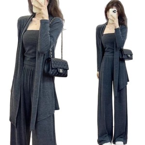 时尚休闲套装女春秋季2025新款时髦减龄洋气长袖外套阔腿裤三件套