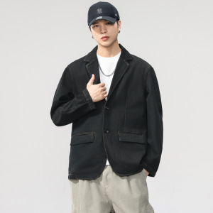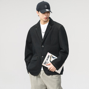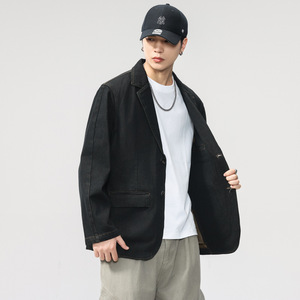 美式复古休闲牛仔外套男春秋2025新款轻熟雅痞西装男工装夹克西服