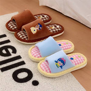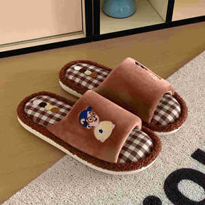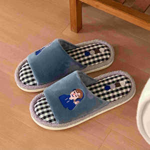 趣味撞色居家软底地板棉拖鞋卡通男女孩秋冬情侣卧室休闲一字拖鞋