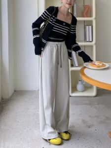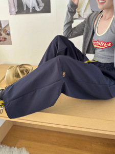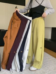 窄版美式香蕉阔腿裤女春秋新款高腰宽松显瘦百搭休闲运动字母卫裤