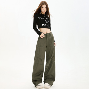 秋季新款工装裤女高腰显瘦宽松百搭多口袋设计辣妹直筒阔腿休闲裤