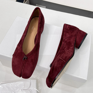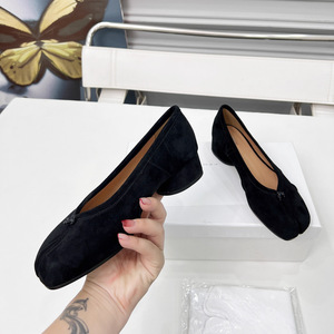 高版对版褶皱羊皮分趾MM6平底芭蕾舞鞋羊京绒面马吉拉女鞋休闲鞋