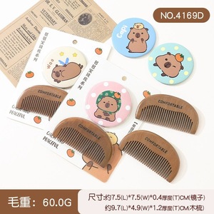 跨境新款镜梳二合一套装木质半月形折叠小镜子 便携式女士带梳子