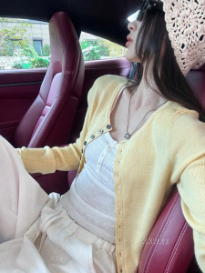 加州落日限定 贝壳扣麻灰针织开衫修身显瘦防晒长袖上衣