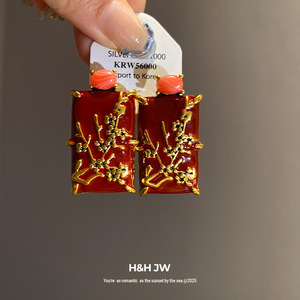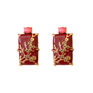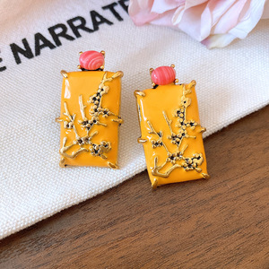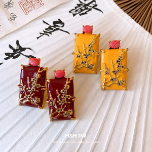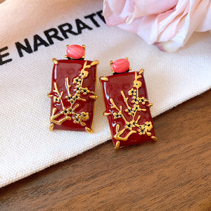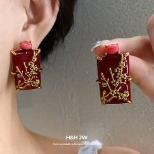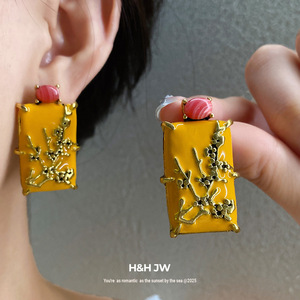 银针新中式滴油椭圆方形石头耳环小众高级感耳钉设计感小众耳饰女