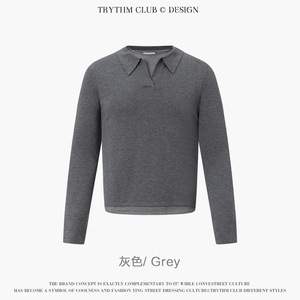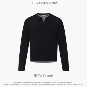 TRYTHMCLUB 高级风polo衫海鸥领假两件宽松长袖针织毛衣情侣T恤上