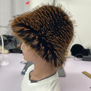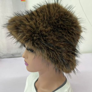 新款跨境渔夫帽时尚高级感圆顶保暖仿貉子毛冬季盆帽长毛渔夫帽