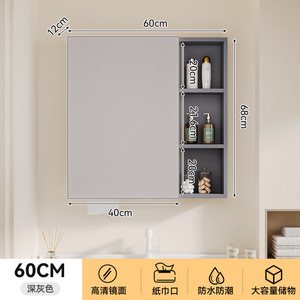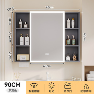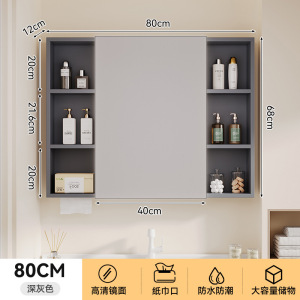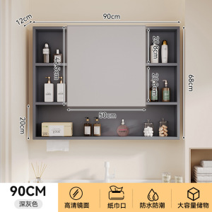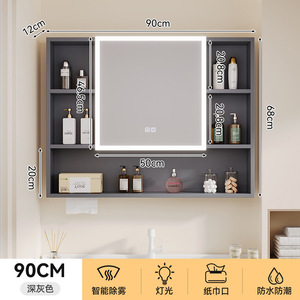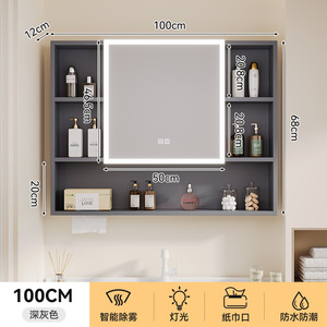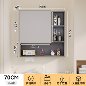太空铝智能浴室储物镜柜单独挂墙式一体铝无缝焊接卫生间浴室镜子