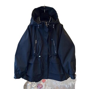 2025秋装高级感休闲运动拉链连帽工装风衣冲锋衣宽松时尚中长外套