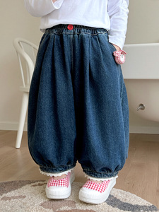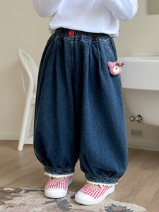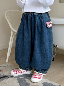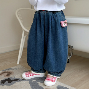 2025新款女童牛仔裤韩版宽松灯笼裤春秋季百搭长裤洋气小熊装饰潮