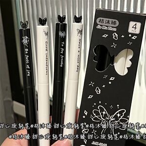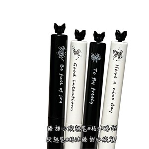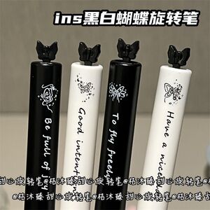 黑白蝴蝶旋转笔ins风高颜值0.5mm可爱学生考试刷题笔黑色中性笔