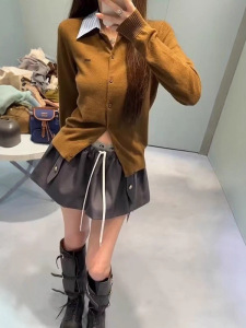 南油高定毛衣开衫m*iu系重工假两件衬衫领针织衫女减龄学院风上衣