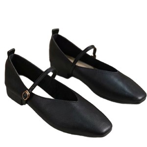 浅口单鞋女2025年春夏季新款复古搭扣低跟鞋文艺方头软皮奶奶鞋