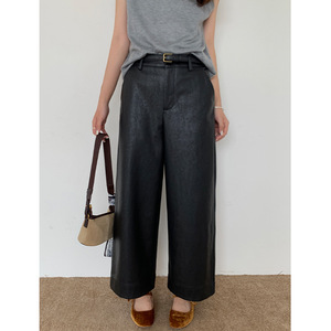 ICC 摩登复古 高级感简约九分裤休闲直筒显瘦皮裤广州十三行0918