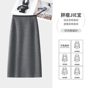 深灰色波点条纹半身裙女2025新款春秋a字裙百搭显瘦气质包臀裙子