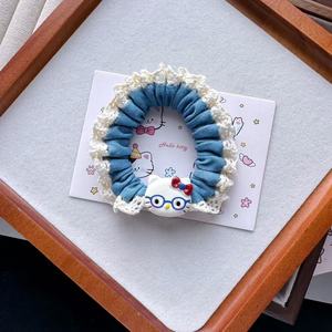 眼镜kt蕾丝发圈牛仔可爱发绳马尾kitty头发头绳高弹力小肠发饰