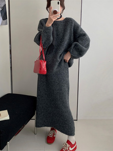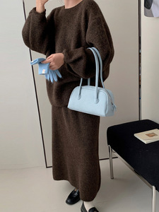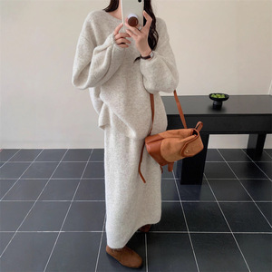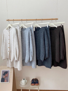 针织套装女秋冬新款正反两穿单排扣毛衣开衫半身长裙休闲两件套女