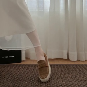 羊皮版~2025秋新款复古圆头厚底百搭乐福鞋女一脚蹬软底渔夫单鞋
