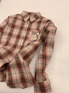 25SS高版本CH家前后十字架皮标刺绣高级纽扣粉色格子慵懒风衬衫