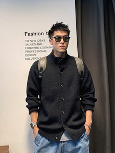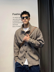 美式复古休闲开衫毛衣男2025秋冬季新款慵懒风男士纯色针织衫外套