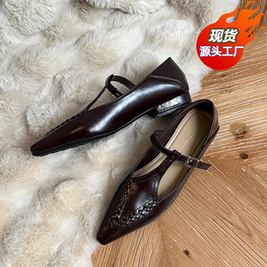 复古尖头玛丽珍鞋女2025秋季新款百搭舒适软底浅口单鞋配裙小皮鞋