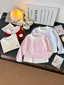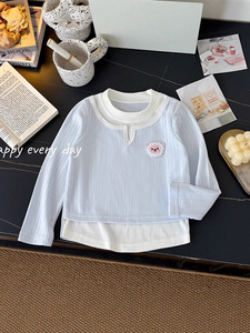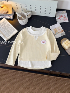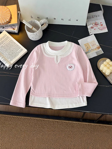 2025新款秋季假两件长袖女童春秋女童中大童儿童女孩洋气打底衫