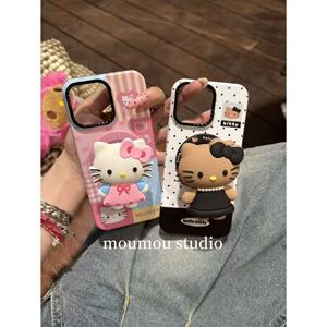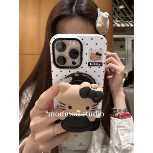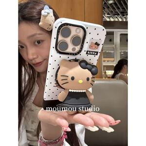 棕头像波点白拼黑+珍珠项链黑裙硅胶凯蒂磁吸支架