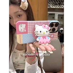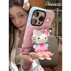白头像多元素底+蝴蝶结粉蓝裙硅胶凯蒂磁吸支架