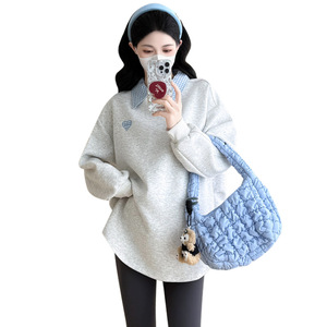 实拍现货 假两件秋季新款孕妇休闲领时尚甜美刺绣宽松恤