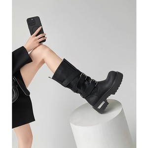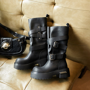 【王小毒】毒液靴●增高6cm~朋克机车靴女粗跟复古中筒西部骑士靴
